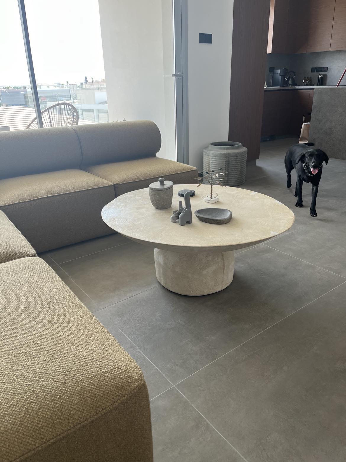 - Style: Modern, sculptural concrete coffee table